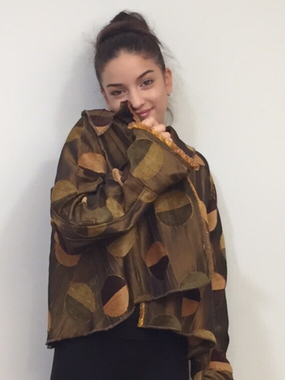 Bell Jacket, Upholstery Material, Bronze, Gold, Green And Brown Circle Jacket
